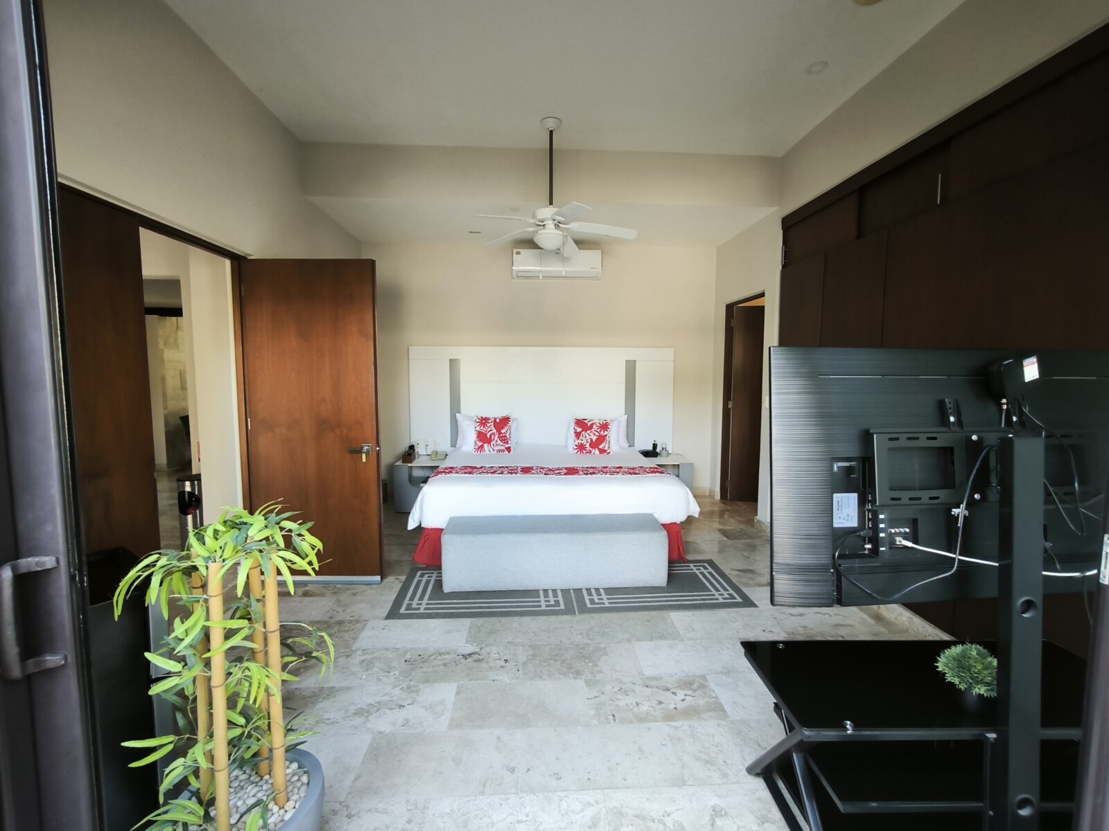 The villa features 6 suite-style bedrooms, each with a private bathroom and terrace, distributed across two levels. This layout allows the property to operate either as a private residence or as a high-end vacation rental asset (Airbnb / luxury rental).